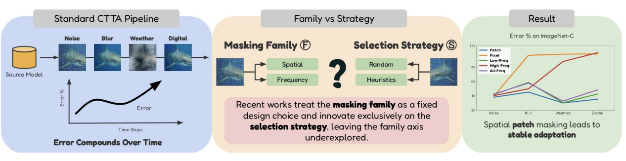 Family Matters: A Systematic Study of Spatial vs. Frequency Masking for Continual Test-Time Adaptation Chandler Timm C. Doloriel, Yunbei Zhang, Yeonguk Yu, Taki Hasan Rafi, Muhammad Salman Siddiqui, Tor Kristian Stevik, Habib Ullah, Fadi Al Machot, Kristian Hovde Liland ArXiv 2026a Test-Time [paper] |